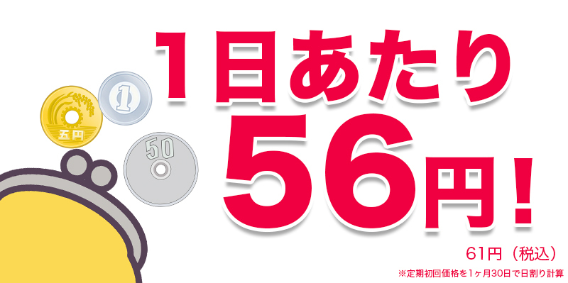 1日たったの56円(税込61円)で